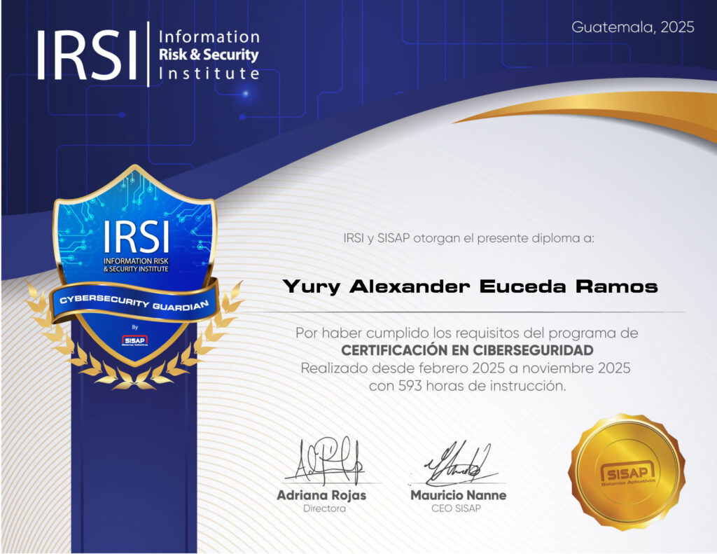 IRSI Acredita sus alumnos graduados como “Guardianes de la ciberseguridad”, esta credencial acredita a a su portador como una persona educada bajo la cultura y profesionalismo del grupo SISAP.